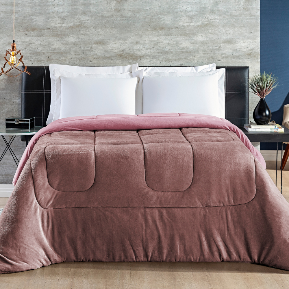 Coberdrom Casal Queen Malha 100% Algodão Edredom com Sherpa - Rosê