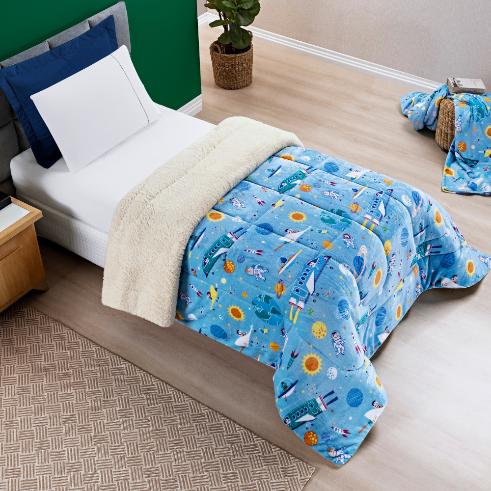Coberdrom Edredom Solteiro Infantil de Sherpa Dupla Face Bouti Kids - Astronauta