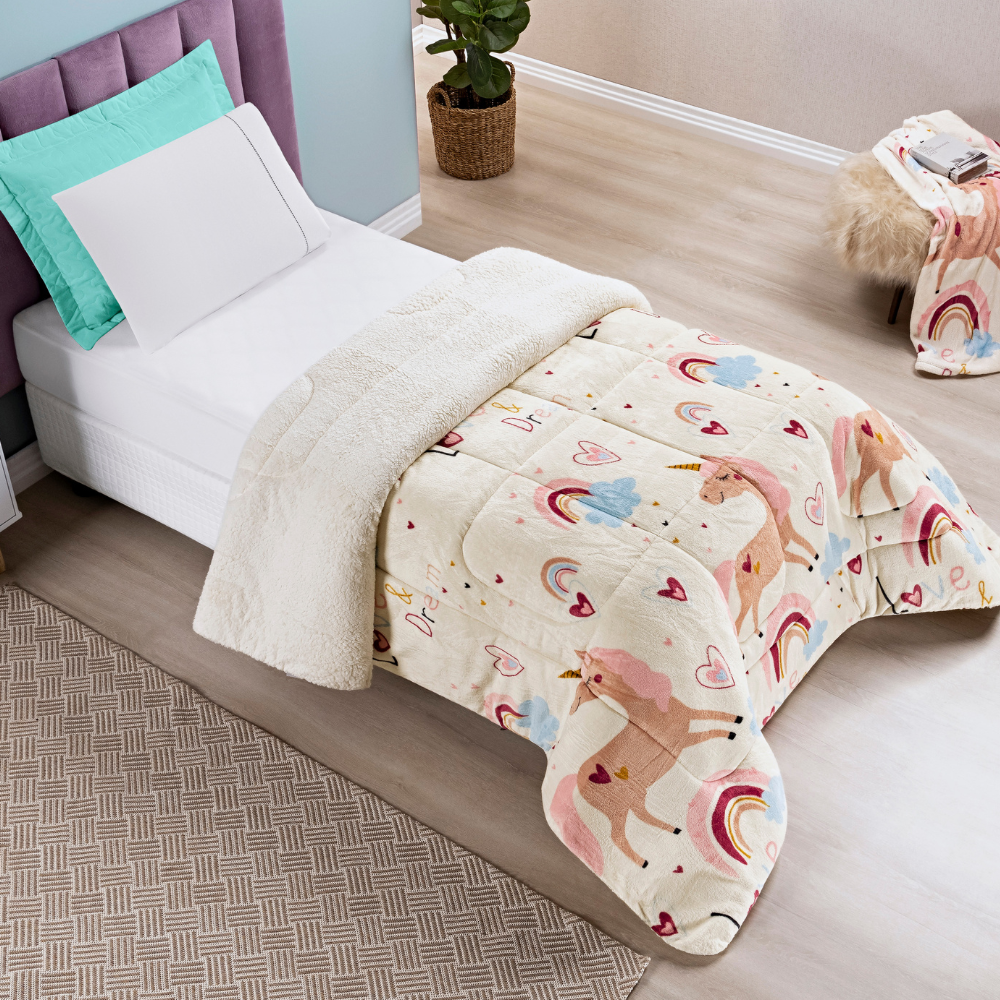 Coberdrom Edredom Solteiro Infantil de Sherpa Dupla Face Bouti Kids - Unicórnio