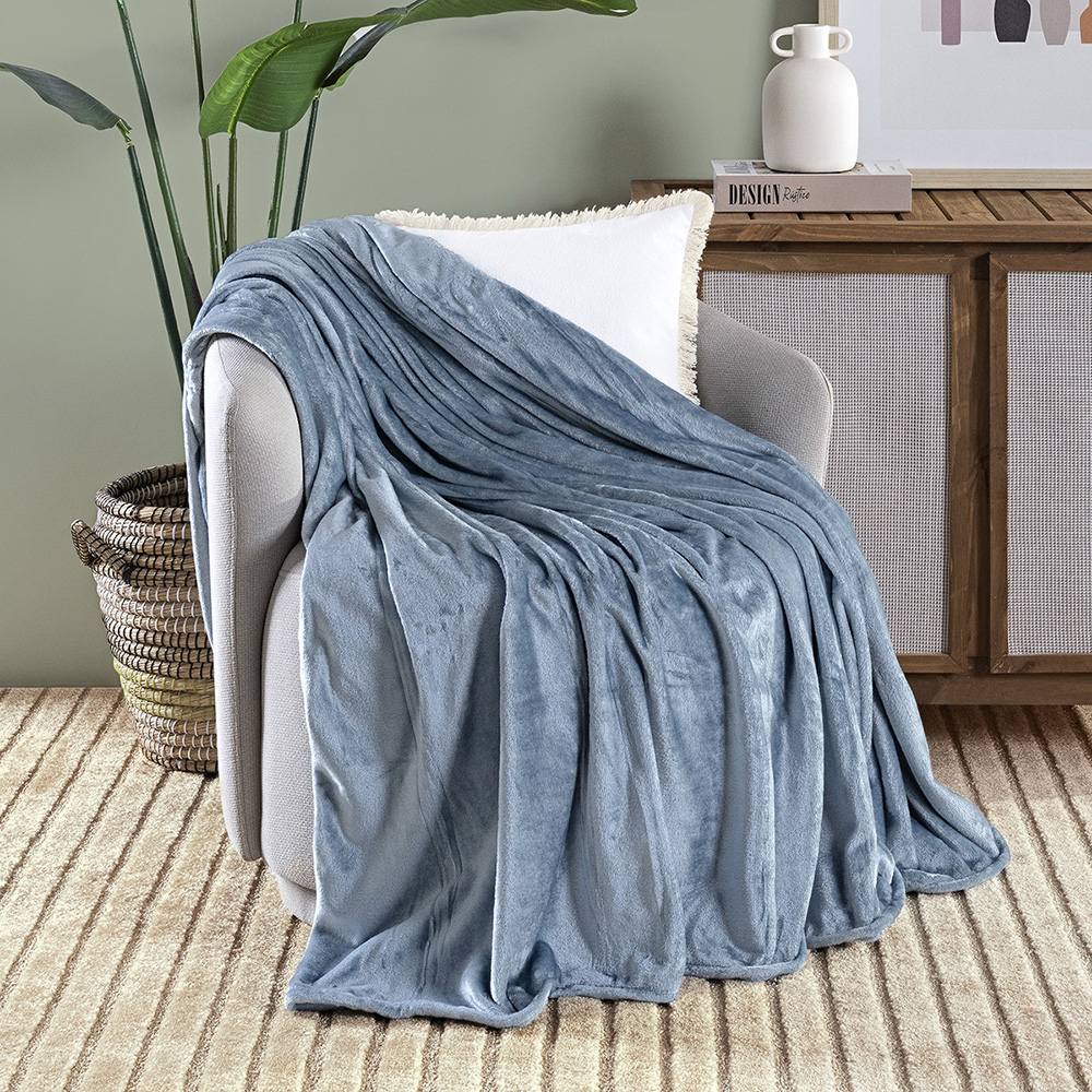 Cobertor Ultrasoft Queen 01 Peça Manta Flannel Plush Toque de Seda Sibéria - Azure