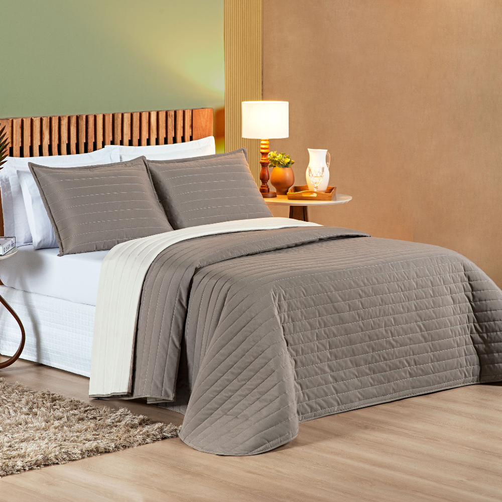 Cobre Leito Casal Padrão 03 Peças Dupla Face 200 Fios Colors - Camafeu/Palha