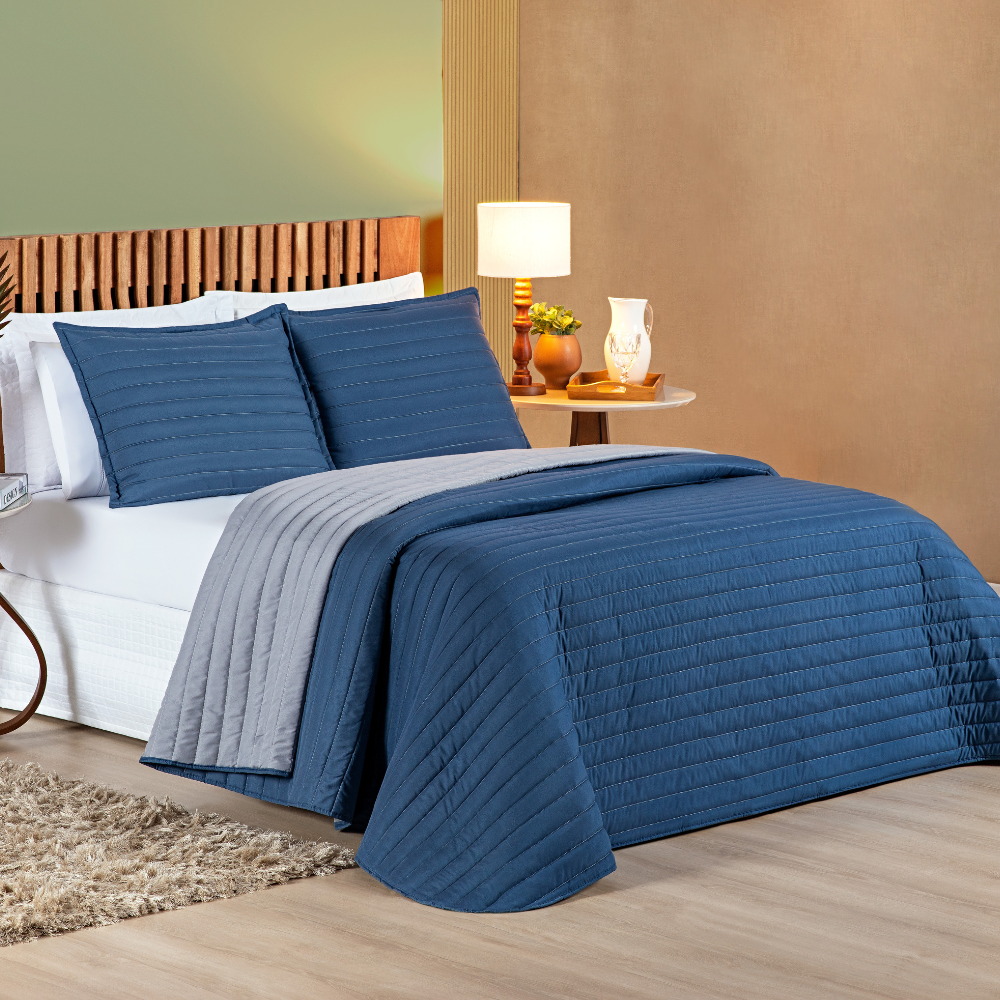 Cobre Leito Casal Padrão 03 Peças Dupla Face 200 Fios Colors - Marinho/Cinza