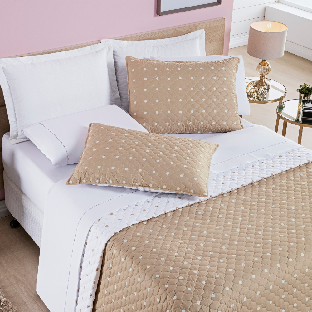 Cobre Leito Casal Padrão 03 Peças Dupla Face 200 Fios Estampado Petit Poá - Cáqui