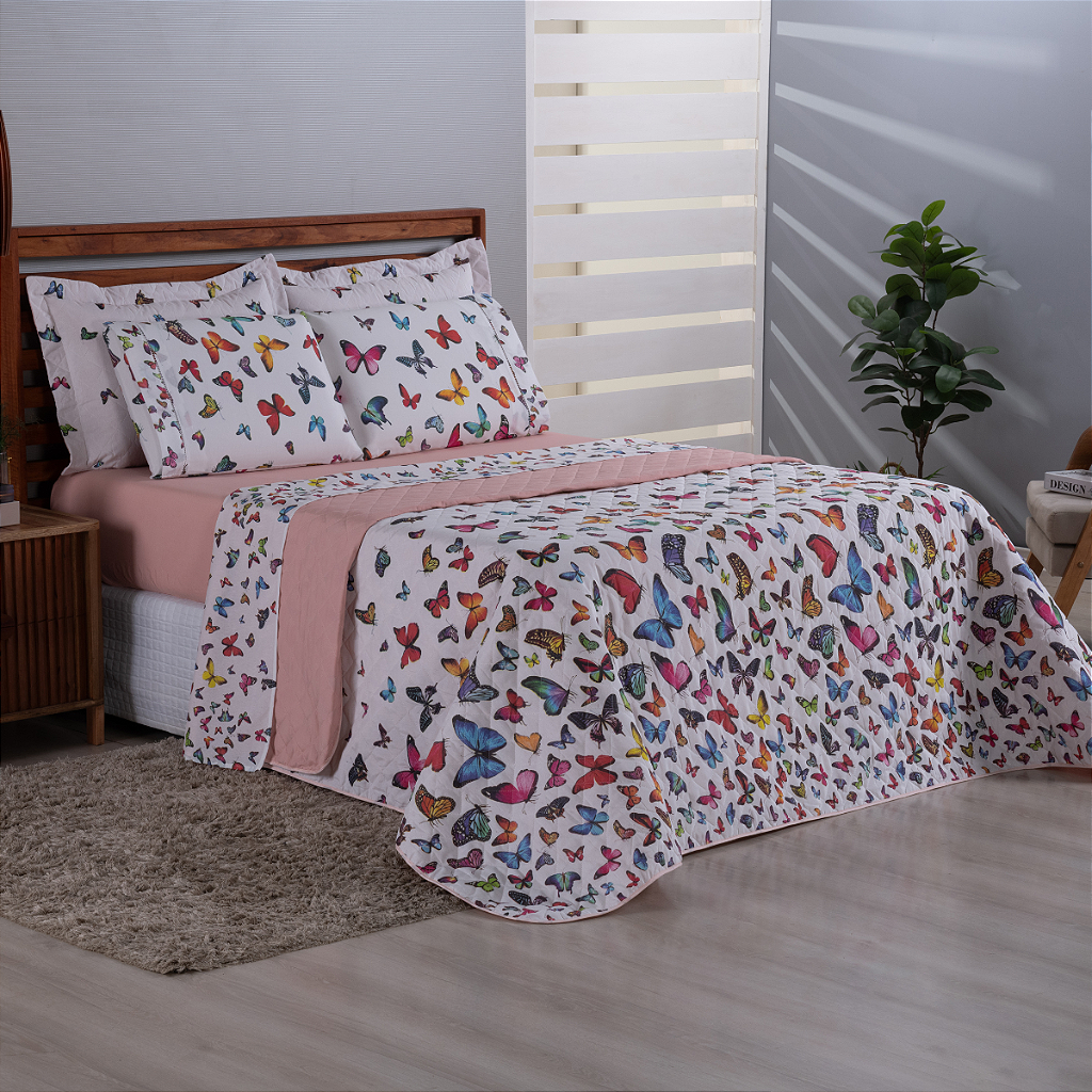Para complementar, o Jogo de Lençol Vivale combina com o cobre leito e adiciona uma atmosfera romântica e encantadora ao seu quarto. Desfrute do conforto e da elegância em cada detalhe!