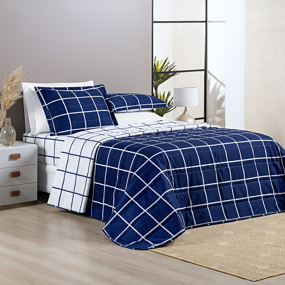 Conheça o cobre leito Austin, um cobre leito com estampa grid, super moderno e elegante. Confeccionado em tecido Micro Percal 200 fios, traz suavidade e conforto, além de proporcionar uma experiência única em seu ambiente.