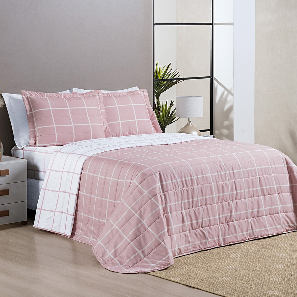 Conheça o cobre leito Austin, um cobre leito com estampa grid, super moderno e elegante. Confeccionado em tecido Micro Percal 200 fios, traz suavidade e conforto, além de proporcionar uma experiência única em seu ambiente.
