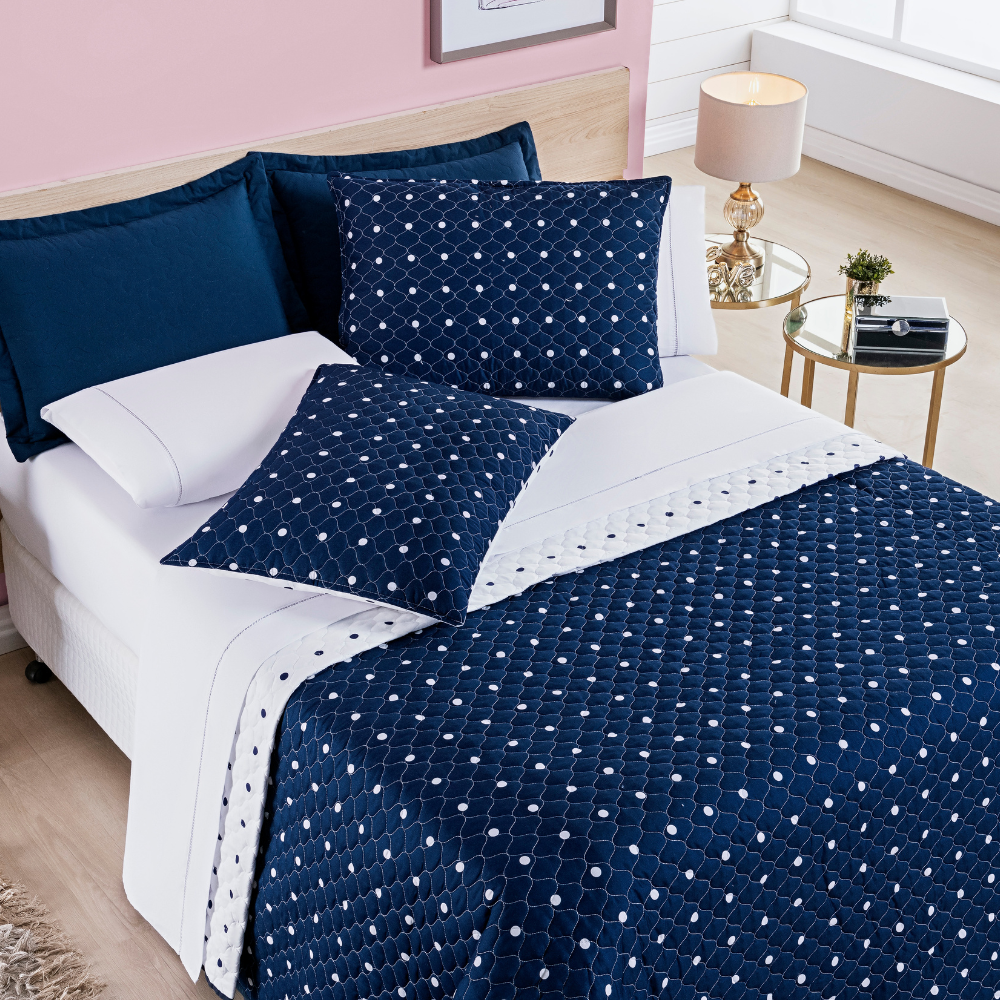 Cobre Leito King 03 Peças Dupla Face 200 Fios Estampado Petit Poá - Marinho