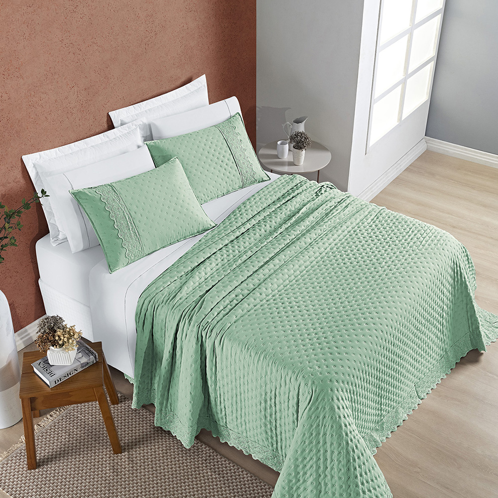Confeccionado no tecido Micropercal 200 fios esse produto é extremamente macio com toque aveludado, igualzinho cama de hotel. Além disso conta com lindos detalhes em matelassê e bordado inglês trazendo muita sofisticação e beleza ao produto.