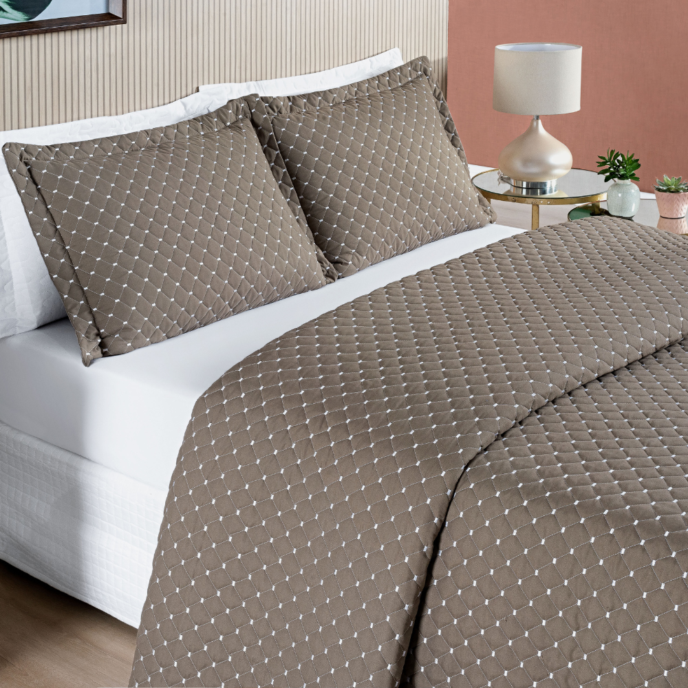Cobre Leito Ravena Dupla Face Queen 03 Peças Micro Percal 200 Fios