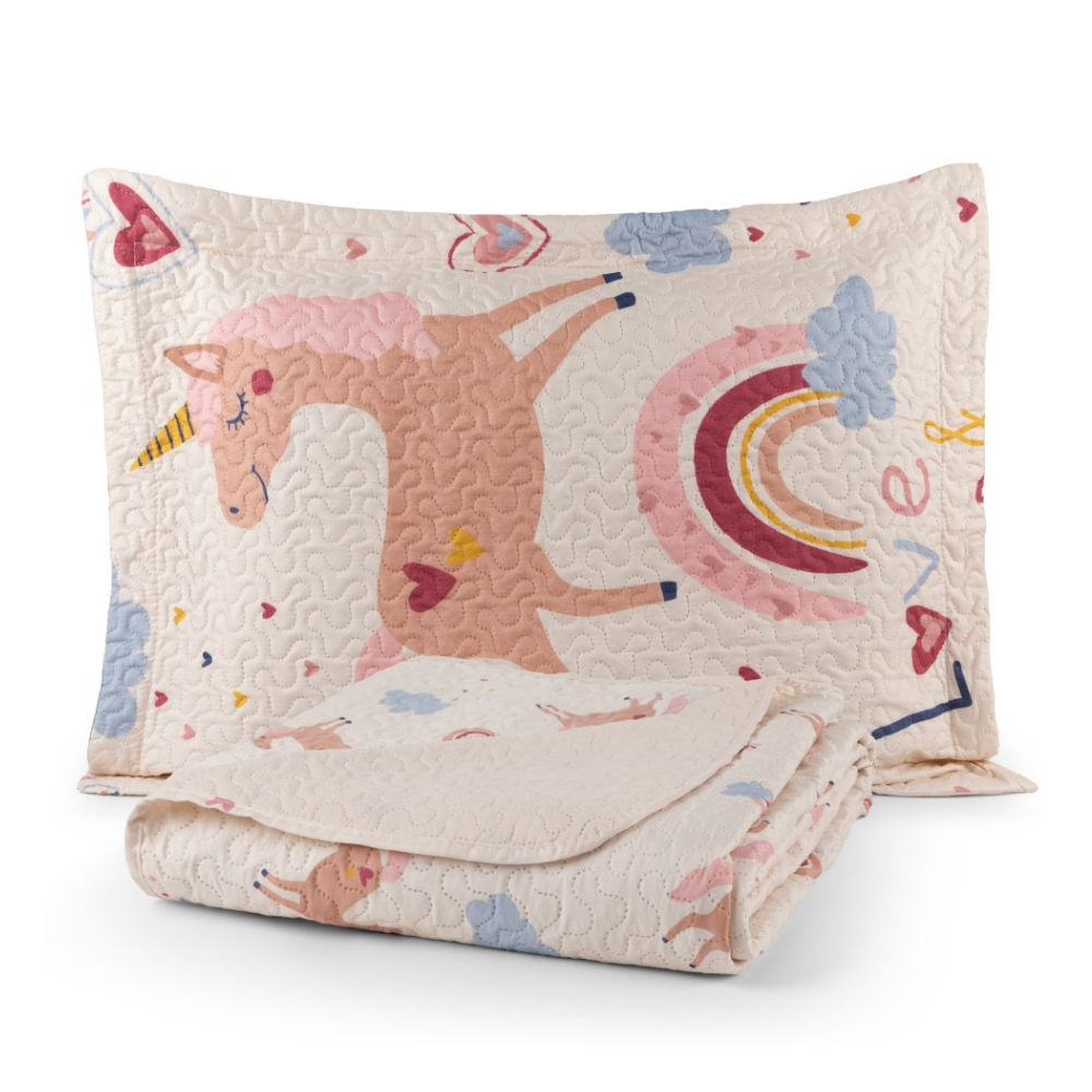 Cobre Leito Solteiro 02 Peças Matelado Dupla Face Bouti Kids - Unicórnio