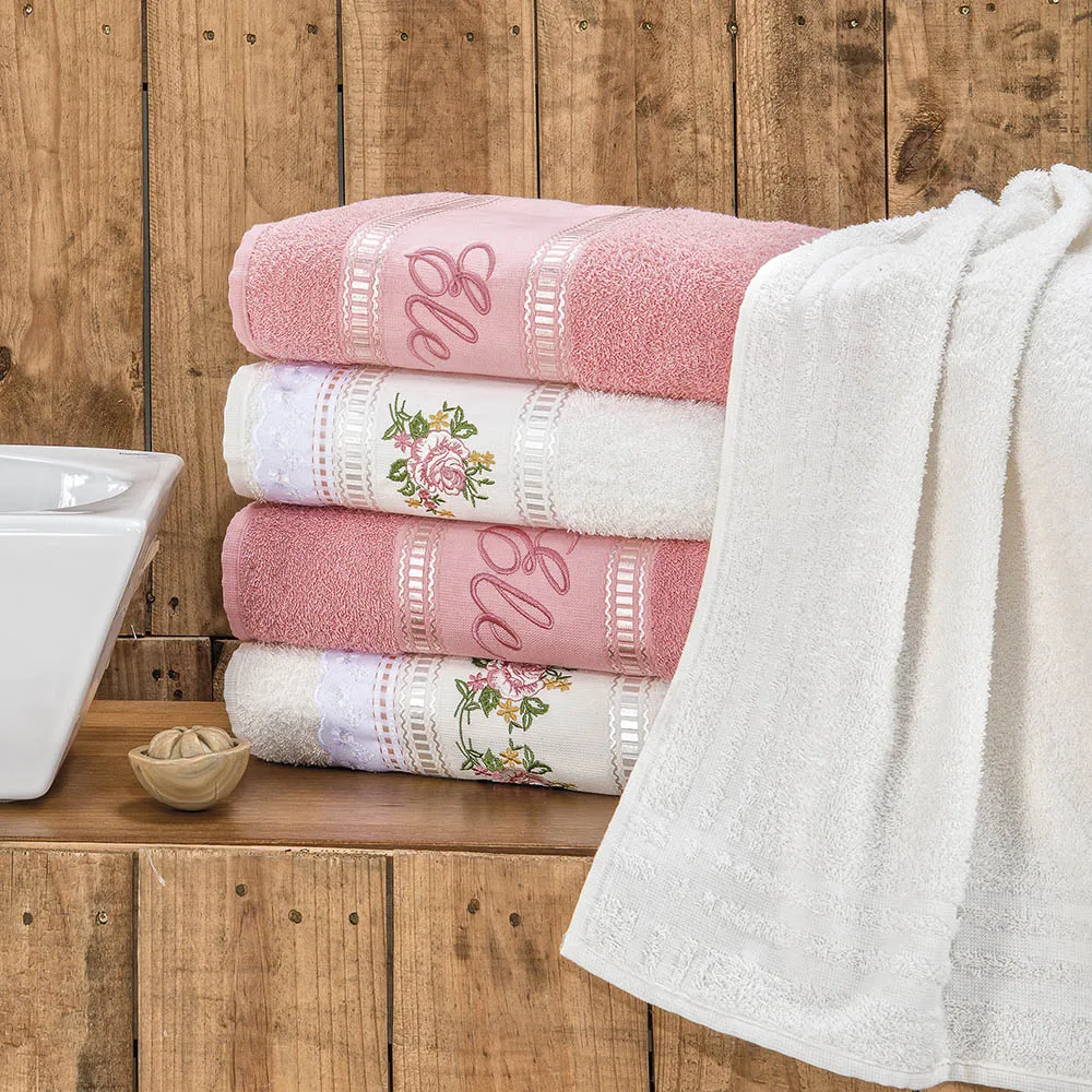 Jogo de banho Ponto Russo toalha 100% Algodão felpuda bordada 05 Peças