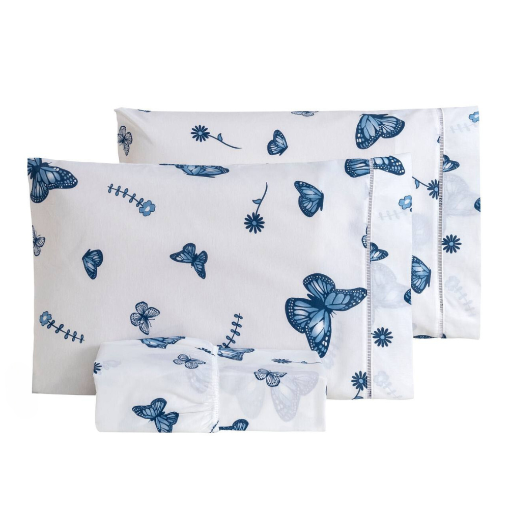Jogo de lençol King 03 Peças 100% Algodão Percal 180 fios Vivale - Borboletas Azul