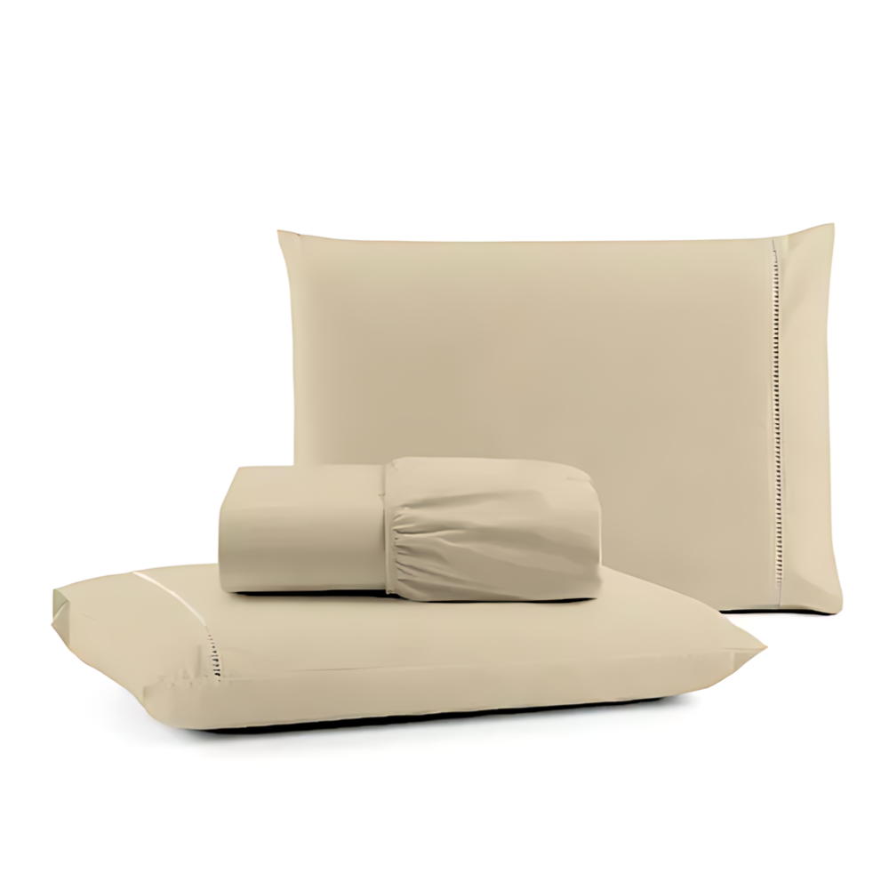 Jogo de lençol King 03 peças 100% Algodão Percal 300 fios Classic - Bege