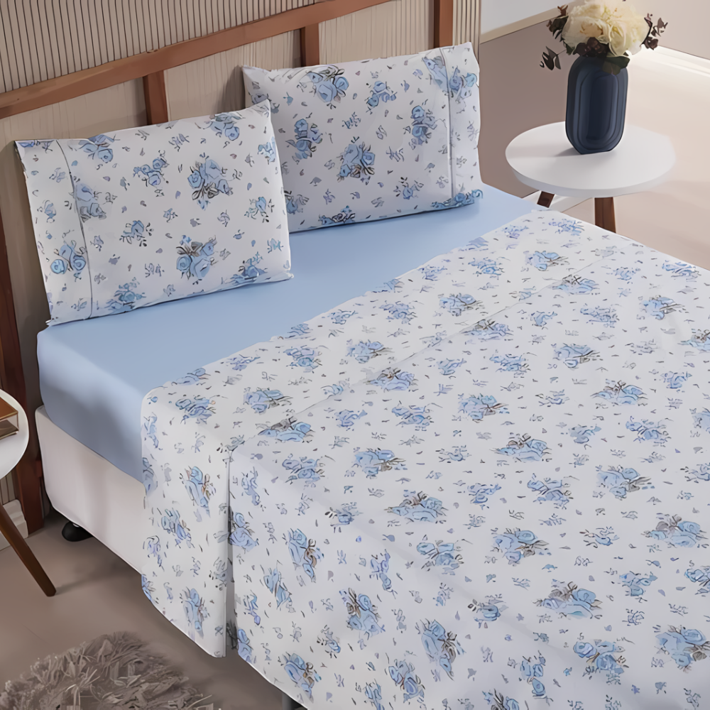 Jogo de lençol Queen 04 Peças 100% Algodão Percal 180 fios Vivale - Safira